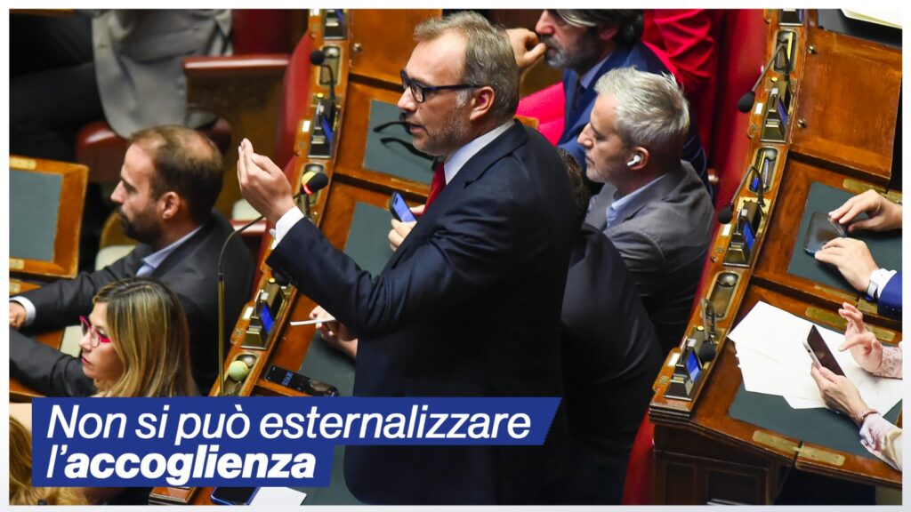 Non si può esternalizzare l’accoglienza L’intervento di Matteo Richetti a Montecitorio Noi siamo fermi su una posizione: non si può esternalizzare il concetto di accoglienza. Costruiamo una gestione efficace che passi attraverso integrazione, riallocazione e rimpatrio, non strutture utili solo alla crescita della propaganda.